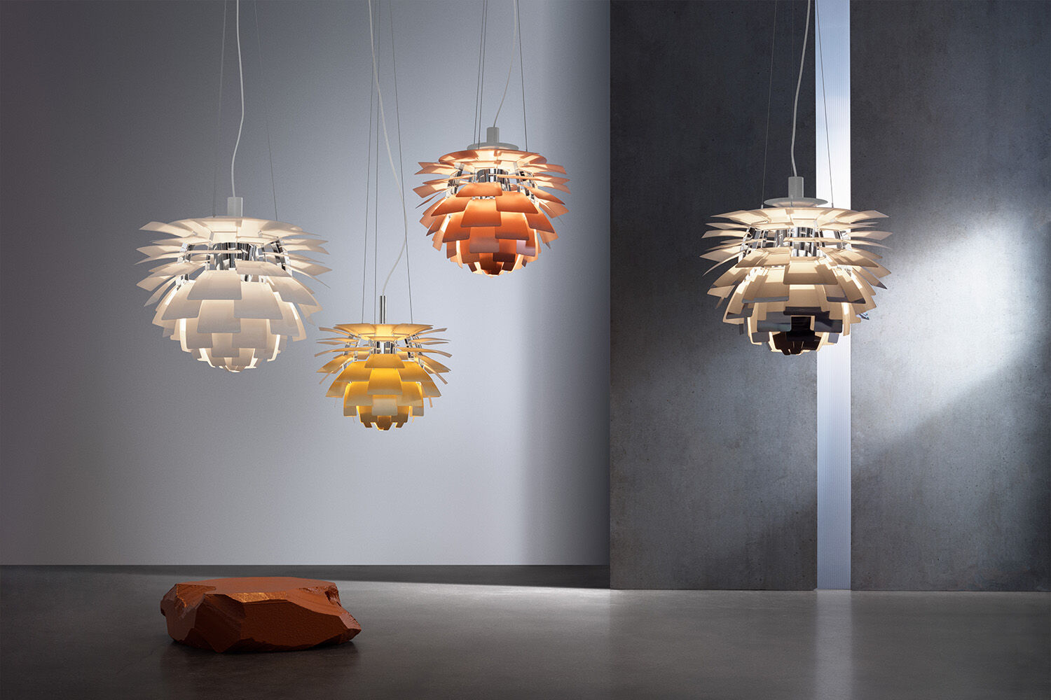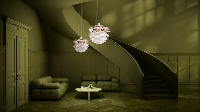 When Poul Henningsen designed the iconic PH Artichoke for the Langelinje Pavillon restaurant in Copenhagen, in 1958, he opted for solid copper leaves with a pale rose coloured finish on the inside. This combination provided an exceptional warmth to the lamp's organic form and beautifully reflected the light. The PH Artichoke creates soft, glare-free illumination, with its complex design and structure ensuring that the light breaks and filters evenly into the room.