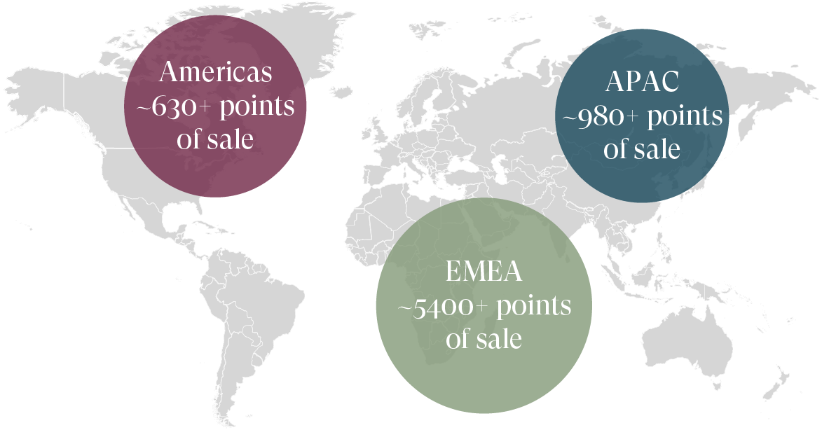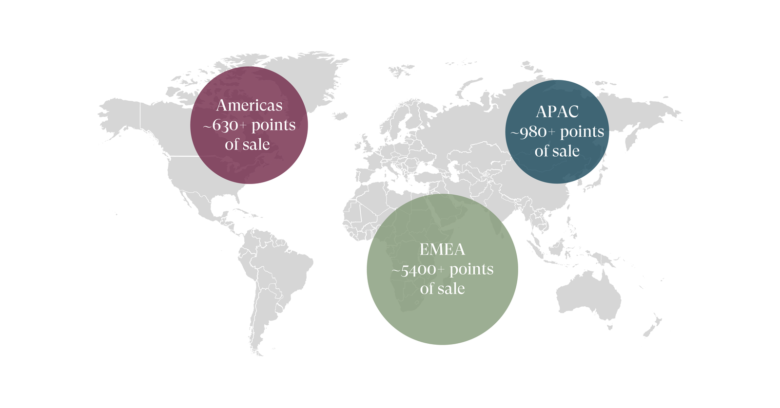 The Group has a presence in more than 130 countries worldwide. An exclusive network of highly professional dealers and mono-brand stores, consolidating its international presence with the opening of wholly owned flag-ship stores in leading capital cities around the world.