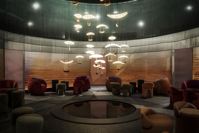 Flos Bespoke realized a stunning series of suspended lamps in glass for Raphaël Navot’s immersive installation The Apothem Lounge. Flos also provided a mix of decorative lights for the scenography of the VIP lounge “Le Club” at the entrance of Hall 7 M&O.